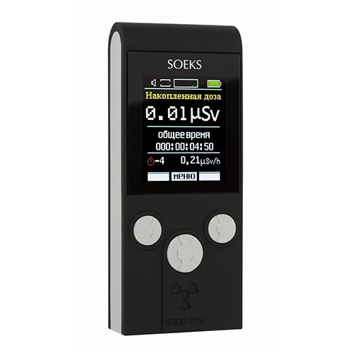 СОЭКС 01М – самый популярный бытовой дозиметр в мире. Усовершенствованная версия СОЭКС Дефендер. Унаследовал от своего предшественника яркий цветной дисплей и компактные размеры. Функциональность, простота использования и демократичная цена сделали его абсолютным лидером продаж в России, Японии, Германии и США. После аварии на Фукусиме, когда проблема личной радиационной безопасности встала как никогда остро, удобные и доступные дозиметры 01М приобрели особую популярность. 01М доступен пользователям, не обладающим специальными знаниями – интерфейс прост настолько, что измерить радиацию сможет даже ребенок. Для начала работ достаточно просто включить прибор – процесс измерения радиации запустится автоматически.